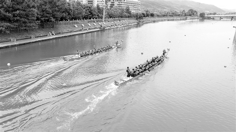 | 6月3日,芦溪县各乡镇的16支龙舟参赛队在袁河芦洲湿地公园段挥桨击水,共享龙舟赛运动的速度与激情。当天,芦溪县第五届端午龙舟文化旅游节在县体育中心拉开帷幕。陈记昌摄 |
