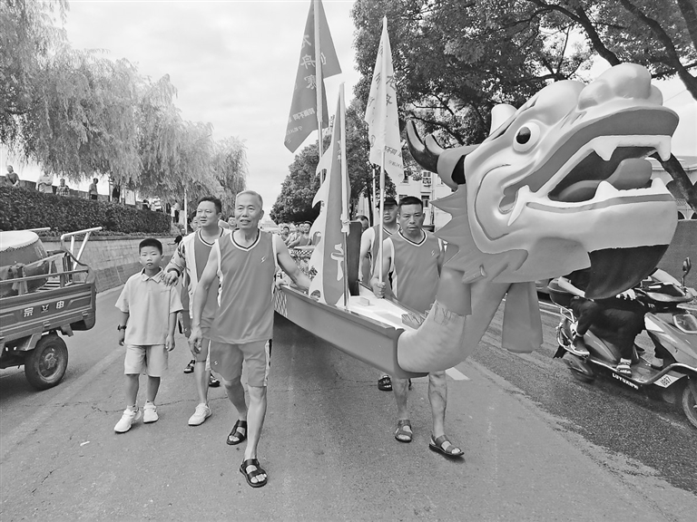 | 5月25日,宁都县11支龙舟队在县城街道巡游。端午节临近,宁都县举办“起龙舟”仪式,以热烈的氛围迎接龙舟赛事。特约通讯员 曾嵘峰摄 |