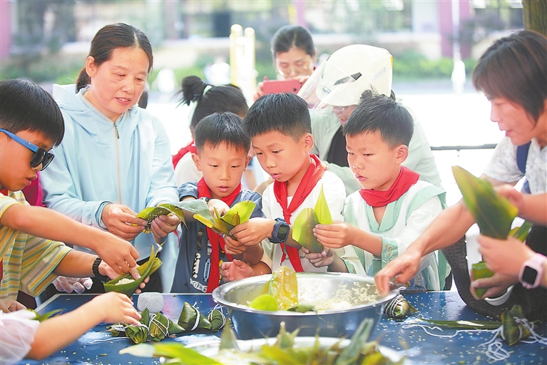 ▲近日,横峰县第一小学举办包粽子活动,邀请家长共同参与,让同学们感受中华优秀传统文化的魅力,共迎端午佳节。通讯员 薛 南摄