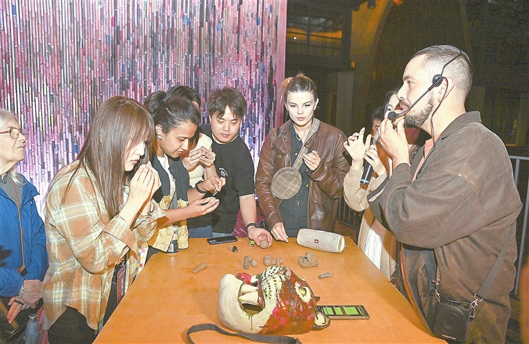 近日,在景德镇市陶溪明珠,厄瓜多尔艺术家正在向游客分享陶瓷乐器及面具的创作过程。陶溪明珠是陶溪川打造的一个开放、共享、互联的城市生活新空间。近年来,陶溪川文创街区不断“生长”,以陶瓷为出发点,延伸到工业、艺术等领域,让艺术融入生活。