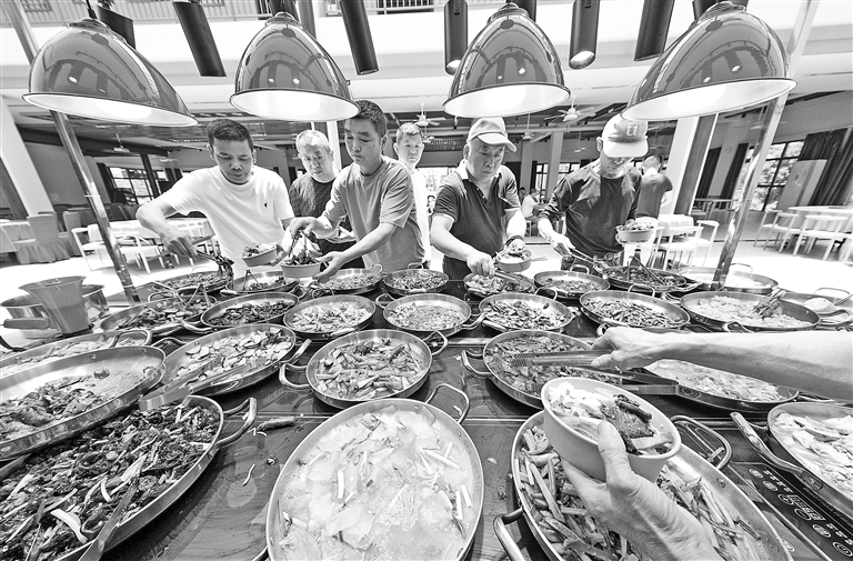 6月3日,在南昌市青云谱区三家店街道熊坊村幸福食堂,30多道自助菜品供居民挑选。当地积极探索“社区+食堂”养老服务模式,该食堂自5月份开业以来,每日接待近300人次就餐,为辖区老年人及周边居民生活带来了极大便利。本报全媒体记者 史港泽摄