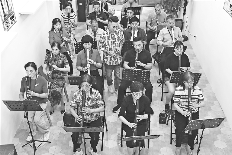 5月31日晚,万载县古城艺凡音乐夜校,电吹管爱好者在老师的指导下一起交流学习、演奏音乐,音乐夜校成为老年人乐享幸福的好去处。特约通讯员 邓龙华摄