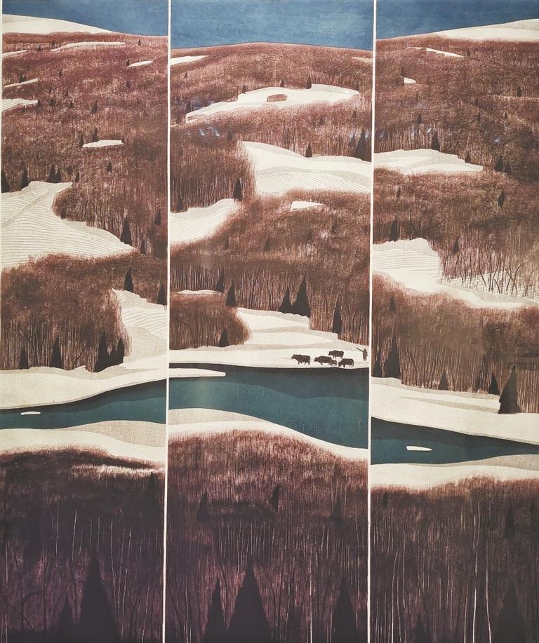 本次版画巡展来到江西,对加强我省与全国版画艺术创作的交流互动、激励我省新生代版画作者不断创新、促进江西版画事业健康发展具有积极意义。(图为展览作品)