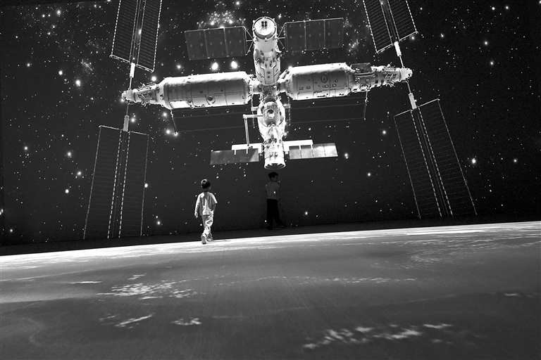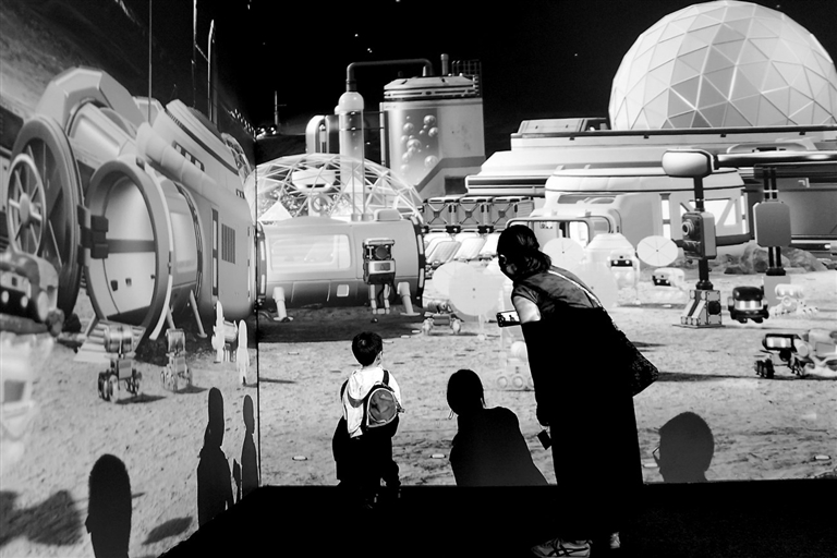 ◀6月8日,观众在上海喜玛拉雅美术馆参观无穹航天展。