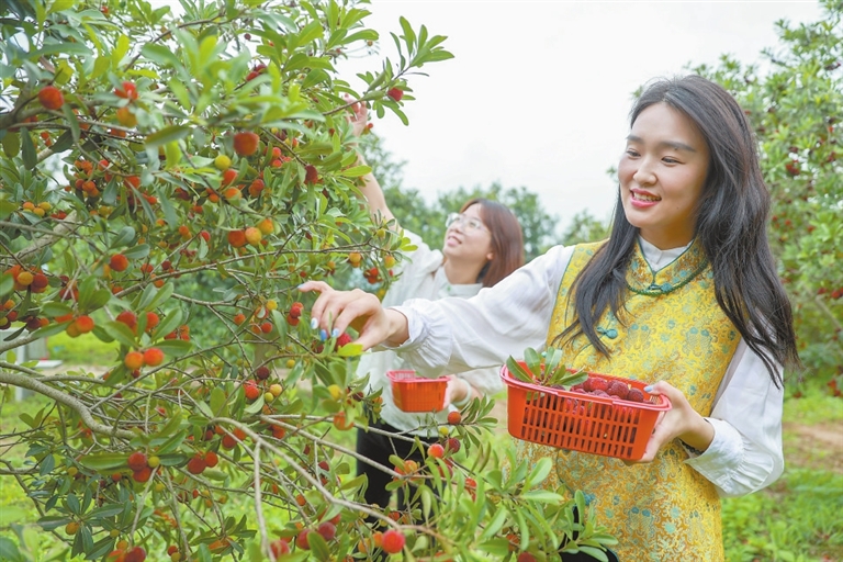 6月6日,在瑞昌市范镇良田村杨梅种植基地,游客正在采摘杨梅。近年来,该镇大力推进生态果业和乡村旅游融合发展,因地制宜种植杨梅、西瓜等特色水果,吸引游客前来观光和采摘,带动农民增收。本报全媒体记者 曹诚平摄
