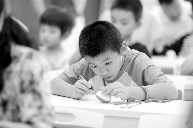 6月7日,余干县少数民族同胞、侨胞侨属及辖区居民欢聚一堂,参加端午传统“浓情迎端午 巧(侨)手传民俗”亲子活动。图为活动现场,一个孩子正在专心致志绘制彩蛋。