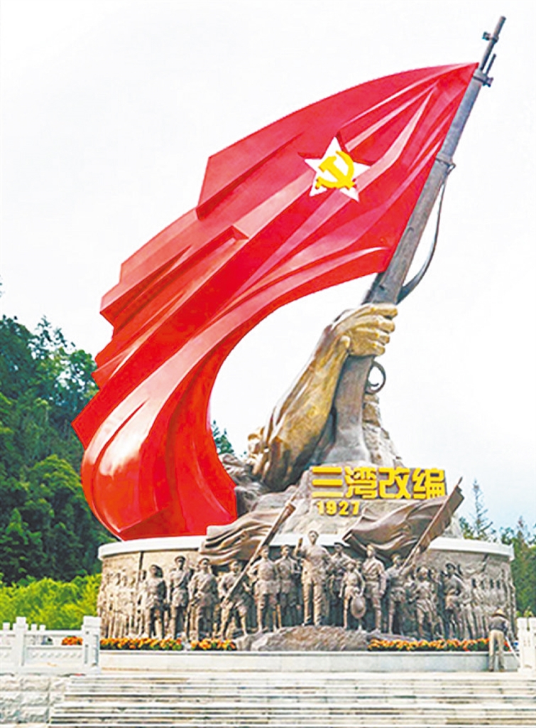群山环峙的三湾村,地处永新县西部九陇山北麓。1927年9月29日,毛泽东率领秋收起义部队,沿着蜿蜒崎岖的古驿道,走进三湾村,开启了人民军队“支部建在连上”的伟大创举,奠定了建设新型人民军队的基础,成为中国共产党政治建军的里程碑,是“党指挥枪”思想的发祥地。