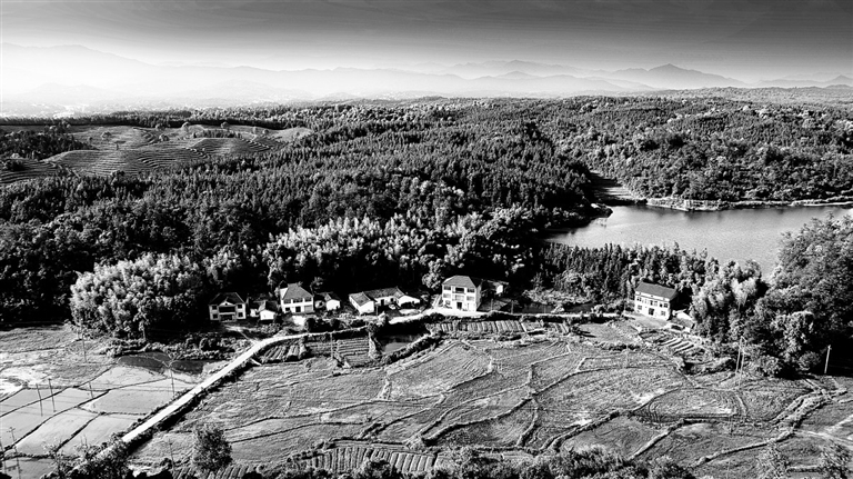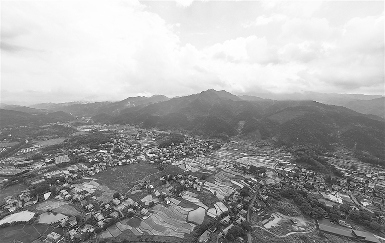 6月14日,芦溪县芦溪镇东阳村绿意盎然,蓝天白云下的古村与远山、道路、田园、民居相互映衬,构成一幅美丽的生态画卷。本报全媒体首席记者 李 劼摄