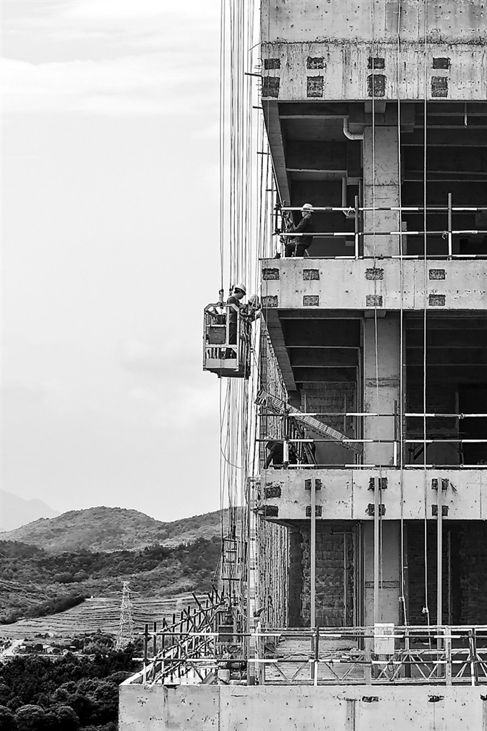 6月15日,在新余高铁新区科创芯孵化产业园,工人正在安装玻璃幕墙。该市积极筹划建设高铁新区,优化提升城北片区,改造完善城南片区,全面提升城市功能品质。本报全媒体记者 邹宇波摄