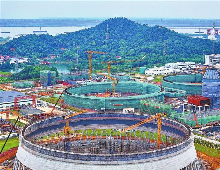 近日,湖口高新技术产业园区某火力发电厂二期2×1000MW项目建设点塔吊林立,现场一片繁忙。今年以来,湖口县加大项目建设推进力度,重点围绕工业领域设备更新,补齐新兴产业发展短板。 特约通讯员 朱海鹏摄
