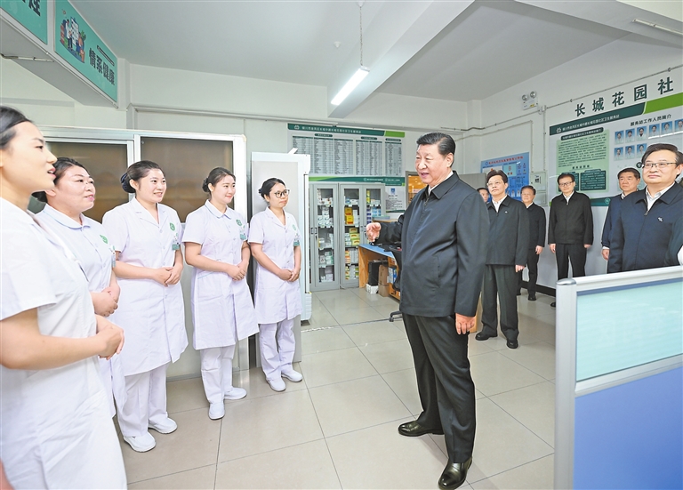习近平来到社区居民赵守成家中,同一家人围坐在一起拉家常,了解他们的就业、收入、医保报销、孩子上学等情况,为他们的幸福生活点赞,鼓励孩子德智体美劳全面发展。赵守成告诉总书记,当地党委和政府十分关心社区建设,特别是在改造老旧小区、丰富居民文体生活等方面做了很多实事,各族群众在社区里和睦相处,生活过得很舒心。习近平强调,我们党是全心全意为人民服务的党,各族群众、家家户户都是我的牵挂。希望你们把家庭建设搞得更好,让日子越过越红火。