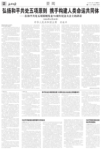 ~~~——在和平共处五项原则发表70周年纪念大会上的讲话 (2024年6月28日)