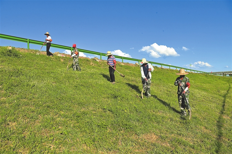 7月7日中午,烈日当空。在南昌县塘南镇红旗联圩,尽管堤坝外的水位正在缓缓退却,大堤上的巡堤员们却没有丝毫懈怠,他们按照既定计划,每天24小时坚守在大堤上,守护堤坝安全。