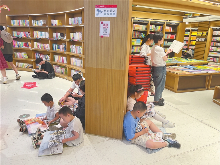7月7日下午,地处南昌八一广场旁的新华书店里安静清凉,放了暑假的中小学生在此看书、写作业,享受书香假期。