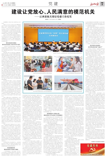 一个党支部就是一个战斗堡垒。近年来,江西牢固树立大抓基层的鲜明导向,持续深化机关基层党建标准化、规范化、信息化建设,全面推进政治功能强、支部班子强、党员队伍强、作用发挥强“四强”党支部创建。鹰潭市余江区创建“红旗党支部”,着力加强基本队伍、基本活动、基本阵地、基本制度、基本保障建设。