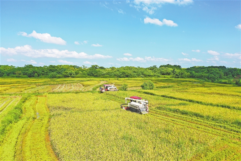 眼下,正值“双抢”农忙时节,南昌市新建区石埠镇鲁田村农民抓住晴好天气,抢收早稻,确保颗粒归仓。图为农民驾驶收割机在田间收割早稻。