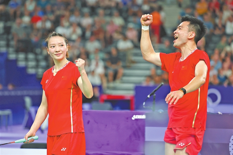 当日,在巴黎奥运会羽毛球混合双打四分之一决赛中,中国组合郑思维/黄雅琼2∶0战胜队友冯彦哲/黄东萍,晋级半决赛。