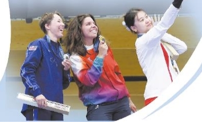 ▲8月2日,冠军瑞士选手莱罗内(中)、亚军美国选手马达莱娜(左)、季军中国选手张琼月在颁奖仪式后合影。当日,巴黎奥运会射击女子50米步枪三姿决赛在法国沙托鲁举行。瑞士选手莱罗内获得金牌,美国选手马达莱娜获得银牌,中国选手张琼月获得铜牌。