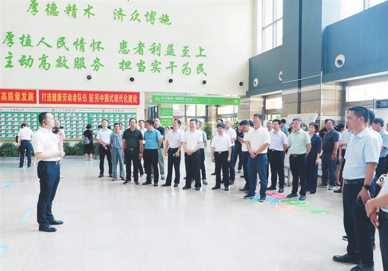 8月2日,全省国家和省级区域医疗中心建设现场会在赣州召开,来自全省医疗界的专家深入南方医院赣州医院(赣州市人民医院),实地参观了解该院国家区域医疗中心建设情况。图为该院院长戴辉在向大家介绍国家区域医疗中心建设的历程、举措和成效。胡慧秀摄