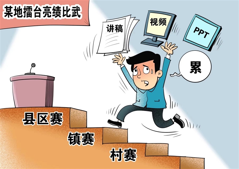 当下,基层一些部门单位出现“打擂热”。诚然,擂台亮绩比武不失为推动比学赶超的有效手段,但个别地区为增加宣传亮点、提升政绩成色,在打擂上贪大求全、过多过频,村赛、镇赛、县区赛层层覆盖,周赛、月赛、季度赛缺一不可,讲稿、视频、PPT制作精良,“只见花架子,不见真功夫”的现象客观存在。如此“擂台”,在增加经济成本的同时,也让参赛者身心俱疲,不仅挫伤干部积极性,也会降低群众满意度,影响正常工作开展。不让“擂台”变“累台”,就要整治基层的形式主义,聚焦突出问题打好攻坚战,强化建章立制打好持久战,实实在在为基层减真负、真减负。