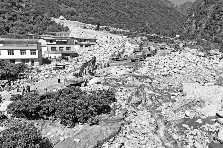 为尽快恢复道路通行,救援人员采取“双向推进,多点施工”的方式,多作业面同时施工。目前,抢通工作推进顺利,国道318线应急通道即将抢通。新华社记者 刘 坤摄
