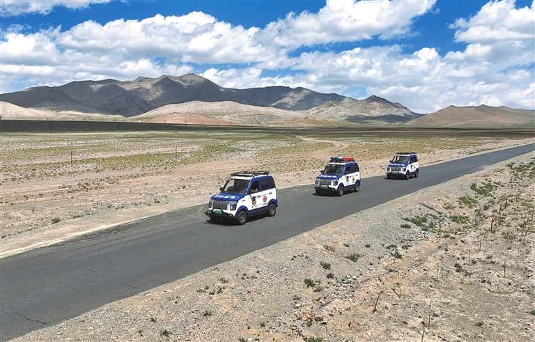 8月5日,新疆克州阿克陶县布伦口乡朗库里边境线上,高原护边员正驾驶着由江西省捐赠的边防巡逻电动汽车执行巡逻任务。这些电动汽车凭借其独特的性能优势,有效解决了帕米尔高原上极端高寒缺氧环境下传统燃油汽车启动难题,以科技力量赋能边防安全。本报全媒体记者 田 野摄