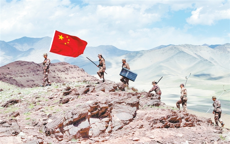 8月5日清晨,祖国最西端的帕米尔高原,白雪皑皑的慕士塔格峰山尖上,一轮朝阳喷薄而出,光芒照耀山河大地。伴随着雄壮的国歌声,鲜艳的五星红旗冉冉升起,迎风招展。柯尔克孜族护边员麦麦提努尔·吾布力艾山一家五口久久地注视着国旗,热泪盈眶。