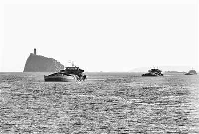 8月8日,丰水期的鄱阳湖鞋山附近水域成为天然航道,一艘艘满载货物的船只南来北往,一片繁忙。