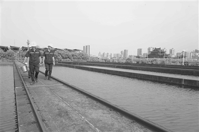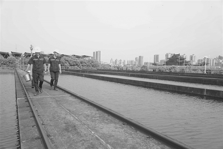近日,南昌市青云水厂工人正在巡查滤池。据了解,该水厂承担了全市40%的供水,送水泵房24小时将合格的饮用水送入市政管网,保障市民用水需求。本报全媒体记者 蔡铖歌摄