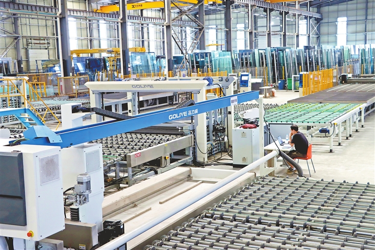 ▲近日,位于赣江新区新祺周片区的博信玻璃有限公司数字化智能工厂生产车间,玻璃在不同的加工环节自动流转,后台程序按照生产计划进行自动加工。今年以来,企业以数字化转型为动力,开足马力生产。