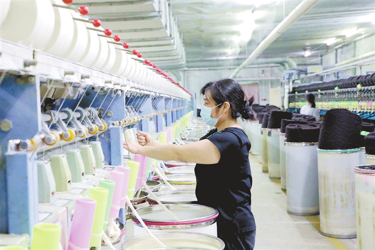 ▶近日,峡江县一纺织企业的生产车间,工人正在加紧赶制订单,满足市场需求。近年来,峡江县各纺织企业加快科技成果研发转化,呈现出订单稳定、产销两旺的良好态势。