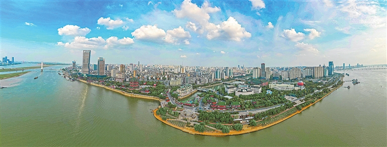 近日,南昌赣江两岸碧水蓝天,白云悠悠,呈现“南昌蓝”的生态美景。近年来,江西持续打好蓝天、碧水、净土保卫战,生态环境质量持续向好。