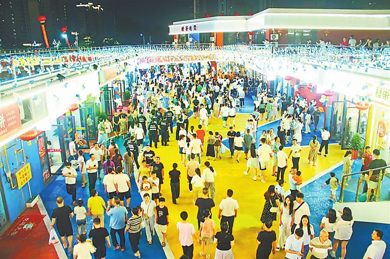 8月28日晚,萍乡经开区举行“辣都萍乡·玉湖美食文化街”开街活动,吸引了众多食客光临夜市。该经开区立足城市新IP,打造了萍乡市首条以“辣”文化为主题的休闲餐饮美食街区,共设置182间商铺。