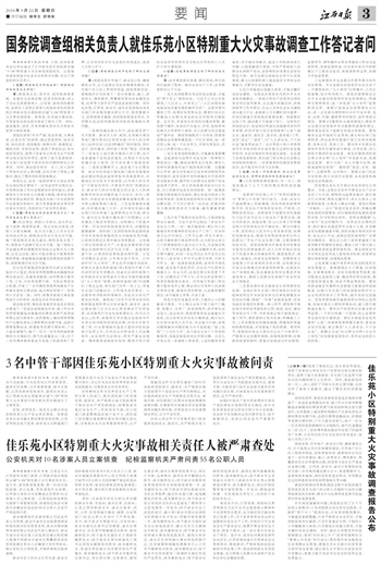 国务院调查组相关负责人就佳乐苑小区特别重大火灾事故调查工作答记者问