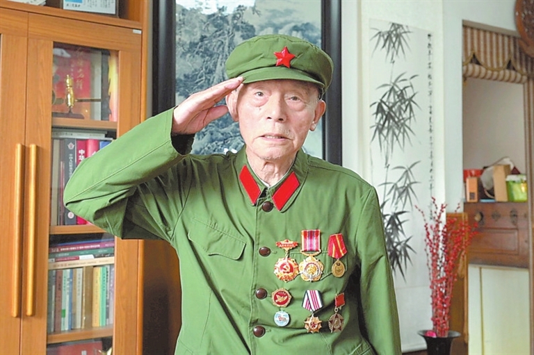 老人名叫舒信树,91岁,靖安县人,曾任中国人民解放军原铁道兵部队第11师54团团长。在抗美援朝战场上,舒信树和战友们面对敌军飞机的狂轰滥炸,顽强抢修铁路线,保障前线物资供给畅通无阻。在和平建设岁月里,他先后参加了南福铁路、兰铜铁路、襄渝铁路、酒泉卫星发射基地专用线路、引滦入津等国家重点工程建设。