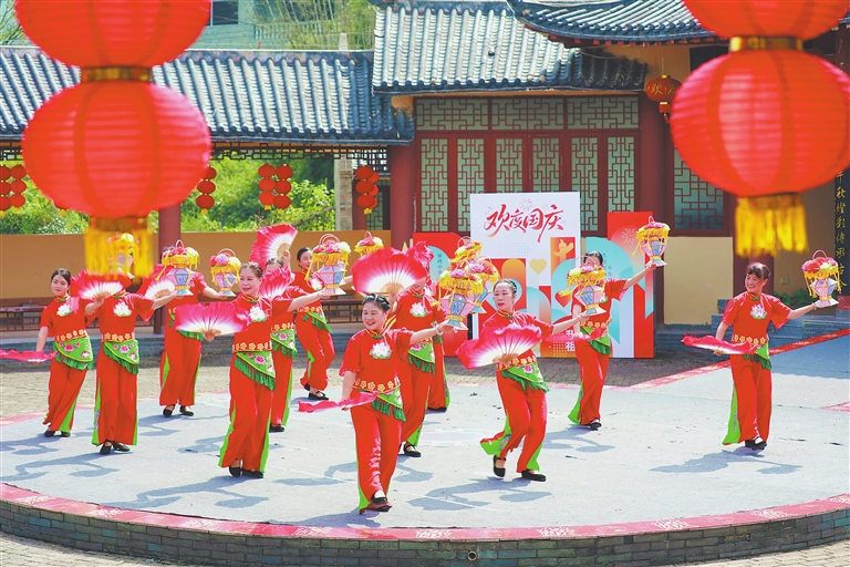国庆期间,石城县琴江镇大畲村古戏台上演精彩的灯彩表演,吸引众多外地游客前来观看。通讯员 温京燕摄
