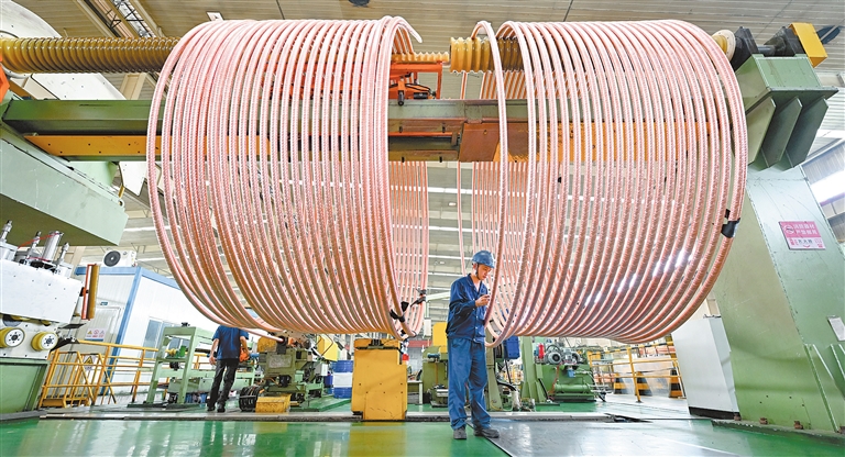 10月17日,位于南昌高新区的江西江铜龙昌精密铜管有限公司生产车间,工人正在赶制订单。进入第四季度以来,该公司紧盯全年目标,积极提高生产效率,全面启动冲刺模式。本报全媒体记者 张翰林摄