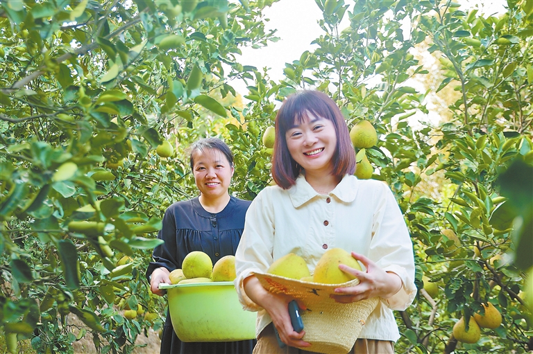 金秋时节,萍乡市安源区青山镇的柚子种植基地,村民在采收成熟的柚子。据了解,该镇的柚子种植面积超过1000亩,总产量达75万公斤,带动当地100多人就业。