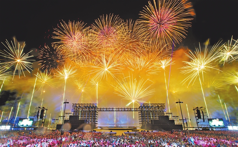 10月19日晚,万载县龙湖公园烟花燃放国际赛事中心举行烟花表演。10月19日至20日,中国·万载第五届国际花炮文化节举办了花炮精品展示交易会、烟花爆竹产业质量提升交流会、焰火·文旅产业融合发展高峰论坛、国际文旅焰火锦标赛等活动。