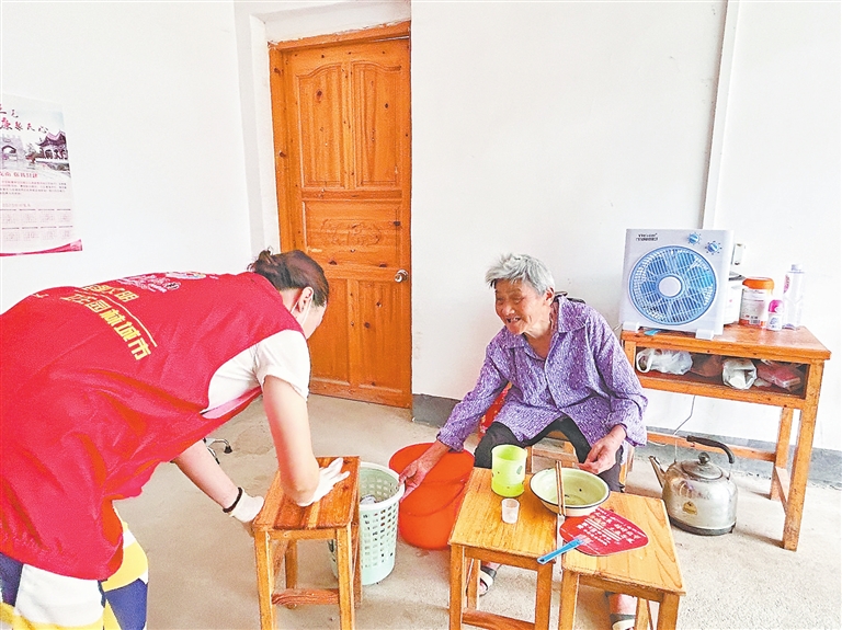 里陂村的秀英阿姨需要卫生纸,罗坝村的蔡大爷想吃肉包子……老人们提出的每一个简单心愿,志愿者都一一记下并尽力实现。在汶龙镇,志愿者成为困难老人的“贴心小棉袄”,每逢周末都会自费购买小礼物探访老人,为他们洗衣晒被、打扫做饭。每当志愿者蔡林林上门探访,70多岁的林金妹总是紧紧拉着她的手,满心欢喜地说:“你来了,我的福气就来了!”