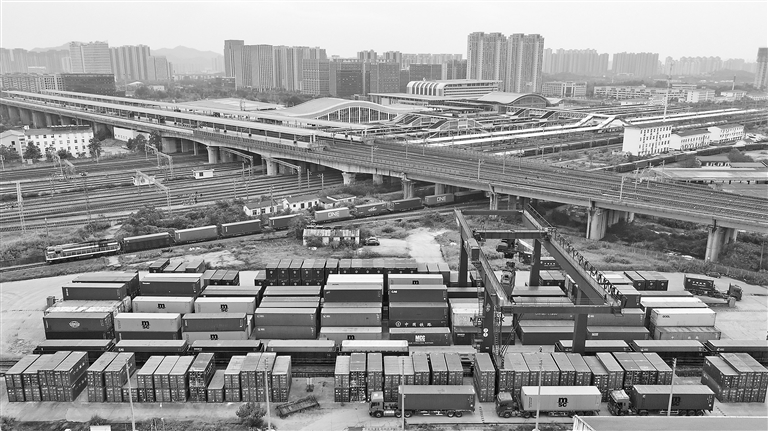 10月29日,上饶无水港呈现出一派繁忙景象。上饶市拓宽对外通道,完善口岸平台功能,让有形的人流物流和无形的数据流加快跑起来。据统计,今年1至9月,上饶无水港共发运集装箱3.69万标箱,同比增长3.64%。