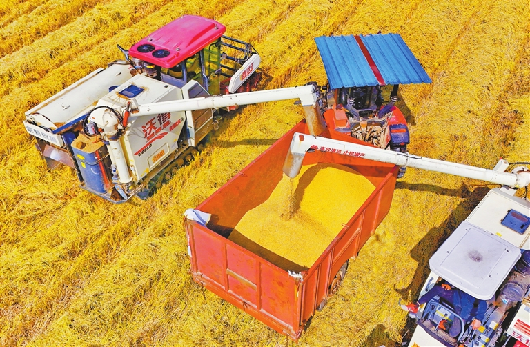 10月28日,江西省国营恒湖综合垦殖场的职工正抢抓晴好天气,争分夺秒地收割晚稻。江西省国营恒湖综合垦殖场强化科学种植技术和田间管理,充分发挥先进农机设备的优势,预计今年晚稻总产量250万公斤。