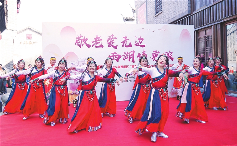 为弘扬孝老爱亲的传统美德,营造尊老敬老爱老的社会氛围,近日,由南昌市西湖区老龄工作委员会主办,西湖区民政局、西湖区南浦街道办事处承办的“敬老爱无边 西湖情更浓”敬老月暨老年文化艺术月系列活动启动。活动现场,舞蹈、唱歌、太极剑、八段锦等节目轮番上演,为辖区老年人带来诸多欢乐。