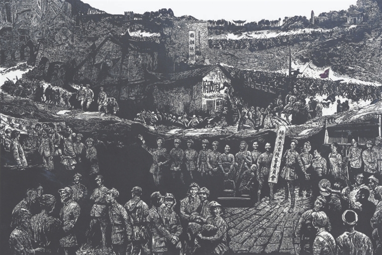 赣州,是中央红军长征出发地。日前,由省美术家协会、中共赣州市委宣传部等单位主办的“新长征 再出发——赣州市纪念中央红军长征出发90周年美术作品展”在赣州美术馆举行。