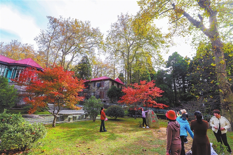10月29日,庐山风景区秋意渐浓,黄了梧桐、红了枫叶,漫山植被色彩斑斓,引得许多游人前来观赏。特约通讯员 韩俊烜摄