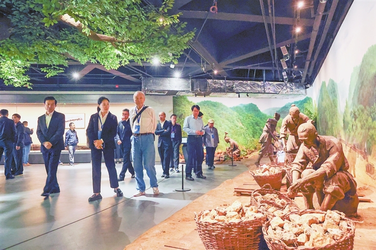 11月5日,游客在瑞昌铜岭铜矿遗址博物馆参观,感受青铜文明。该馆于10月10日开馆,是长江国家文化公园重点项目。瑞昌铜岭铜矿遗址位于瑞昌市夏畈镇,始采于3300余年前的商代中期,连续开采1000多年。博物馆展陈分为《探源》《匠心》《薪火》三部分,分别阐述铜岭铜矿遗址在华夏五千年文明史上的重要地位,展示遗址考古发掘所取得的丰硕成果。 本报全媒体记者 曹章保摄