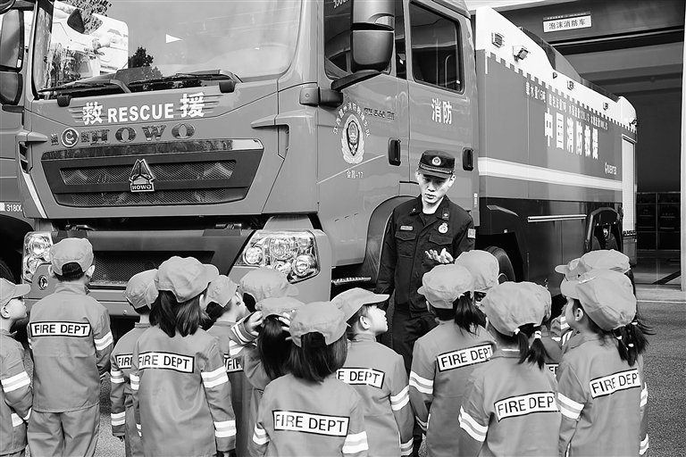 11月5日,在第三十三个全国消防日来临之际,会昌县第八幼儿园开展“萌娃学消防,安全伴成长”主题活动,小朋友们在老师的带领下走进县消防救援大队,参观消防车、体验消防设备,学习消防知识,提高应急自救能力及安全防火意识。特约通讯员 刘兆春摄