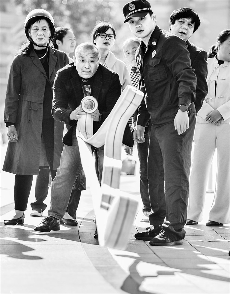 11月7日,资溪县城东社区居民在新时代文明实践广场学习消防技能。特约通讯员 吴志贵摄