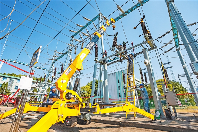11月6日,国网南昌供电公司的工作人员使用新配备的轻型履带吊机,在南昌经开区对220千伏盘航线母线侧刀闸进行检修,确保电网设备迎峰度冬稳定运行。 本报全媒体记者 朱兆恺摄