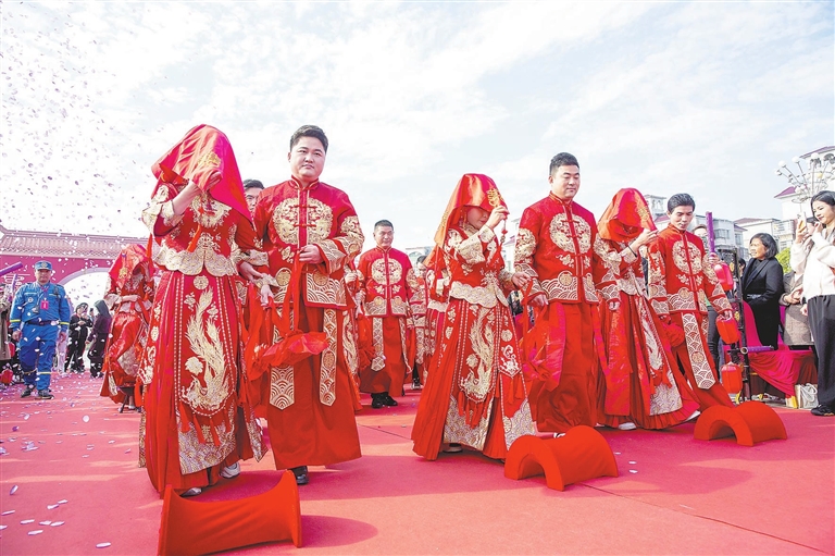 10月30日,都昌县举行第三届集体中式婚礼,12对新人在亲朋好友和现场观众的见证下步入婚姻殿堂,共结百年之好。该活动旨在倡导文明婚恋新风尚。